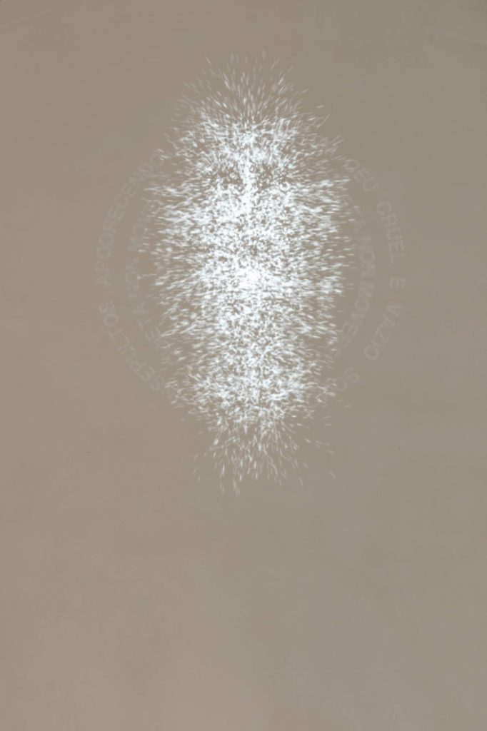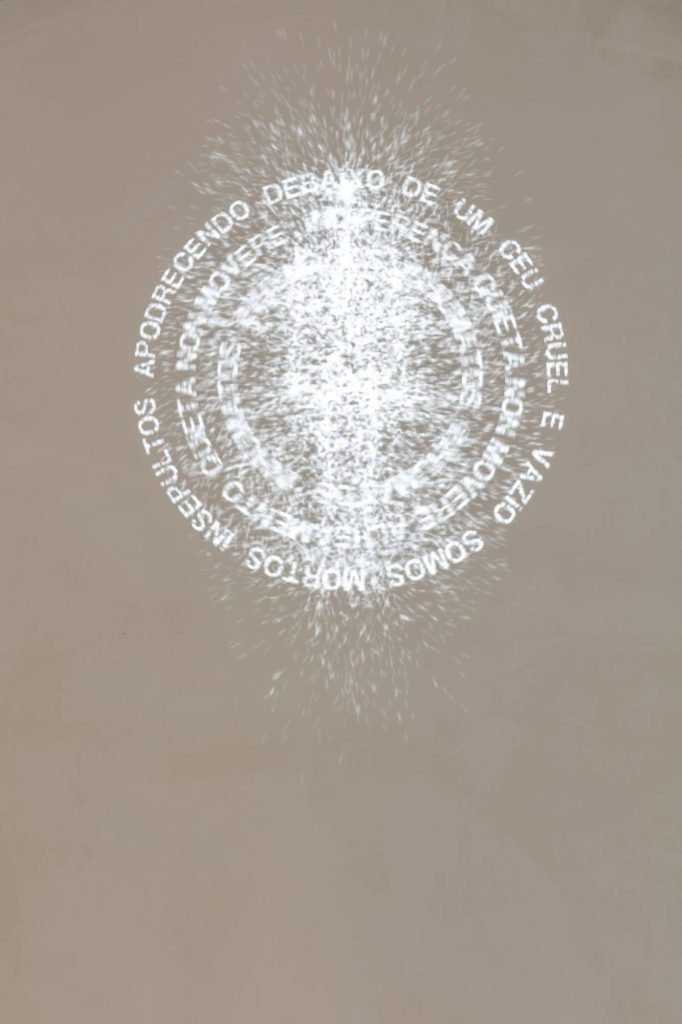 Abstract: Uma obra que conjugou a presença de ferro fundido e de vídeo projeções interativas de imagens tridimensionais geradas em tempo real. Iconografia funerária etérea onde o seu posicionamento, num plano lumínico, promove uma relação entre a quietude de quem se situasse no reduzido espaço da galeria e uma gratuita mobilidade de alguém que passasse e/ou parasse no seu exterior.